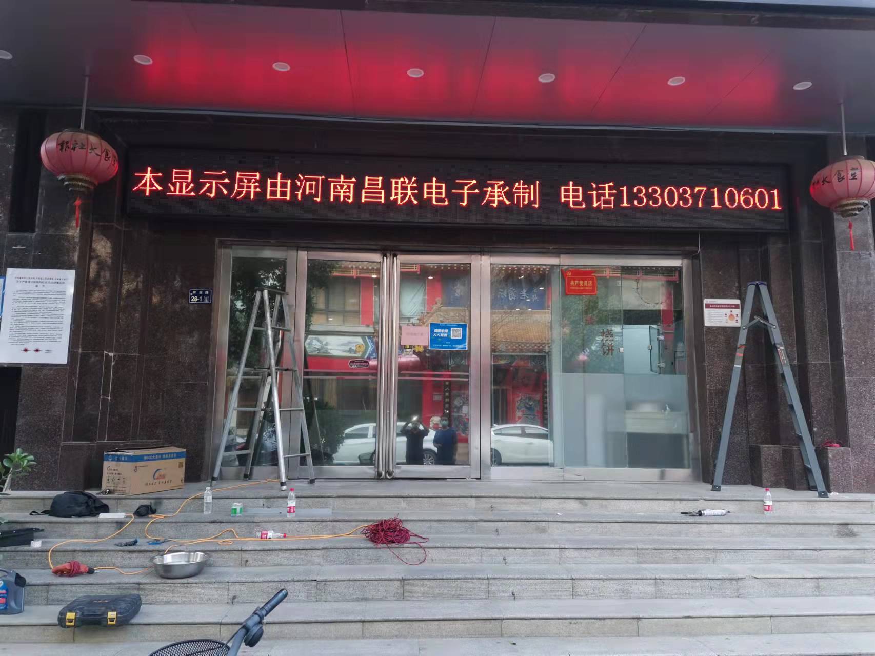 LED顯示屏安裝地點(diǎn):河南日?qǐng)?bào)報(bào)業(yè)大廈食堂門(mén)口