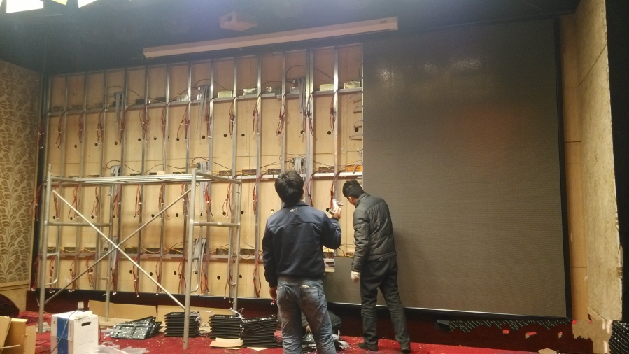 鄭州天地粵海酒店LED顯示屏安裝現(xiàn)場