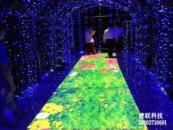 21世紀(jì)是智能的時代,自動扶梯、無人超市、智能指紋解鎖、無人駕駛,以及現(xiàn)在人手一部的智能手機(jī),無一不在像我們召喚,智能化將會越來越普及以便利我們?nèi)粘I?。從發(fā)展的角度而言,LED顯示屏行業(yè)的智能化也是大勢所趨。在互動領(lǐng)域,表現(xiàn)最為突出的要數(shù)LED地磚屏。什么是LED地磚屏?顧名思義,LED地磚屏是個性化的專門為地面設(shè)計的LED顯示屏。相較傳統(tǒng)的LED顯示屏,LED地磚屏在承重、防護(hù)性能、及散熱性能等方面做過特殊設(shè)計,使其能適應(yīng)高強(qiáng)度踩踏,長時間正常運(yùn)行?;拥卮u屏是在LED地磚屏基礎(chǔ)之上,增加了感應(yīng)互動功能。比如借助紅外感應(yīng),可以跟蹤人的運(yùn)動軌跡,能夠跟隨人體的活動呈現(xiàn)即時的畫面效果,從而可以實現(xiàn)諸如演員與觀眾走過,腳下出現(xiàn)水波紋、花朵開放等效果。