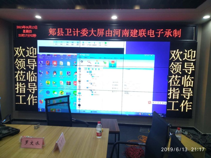 近日,建聯(lián)電子為平頂山郟縣衛(wèi)計委設計一套大屏顯示系統(tǒng),中間為55寸三星液晶拼接屏,兩邊為室內(nèi)雙色LED顯示屏,頂上還用一塊室內(nèi)單色會標屏。LED顯示屏和液晶拼接屏的完美結合,營造了一種視覺盛宴。