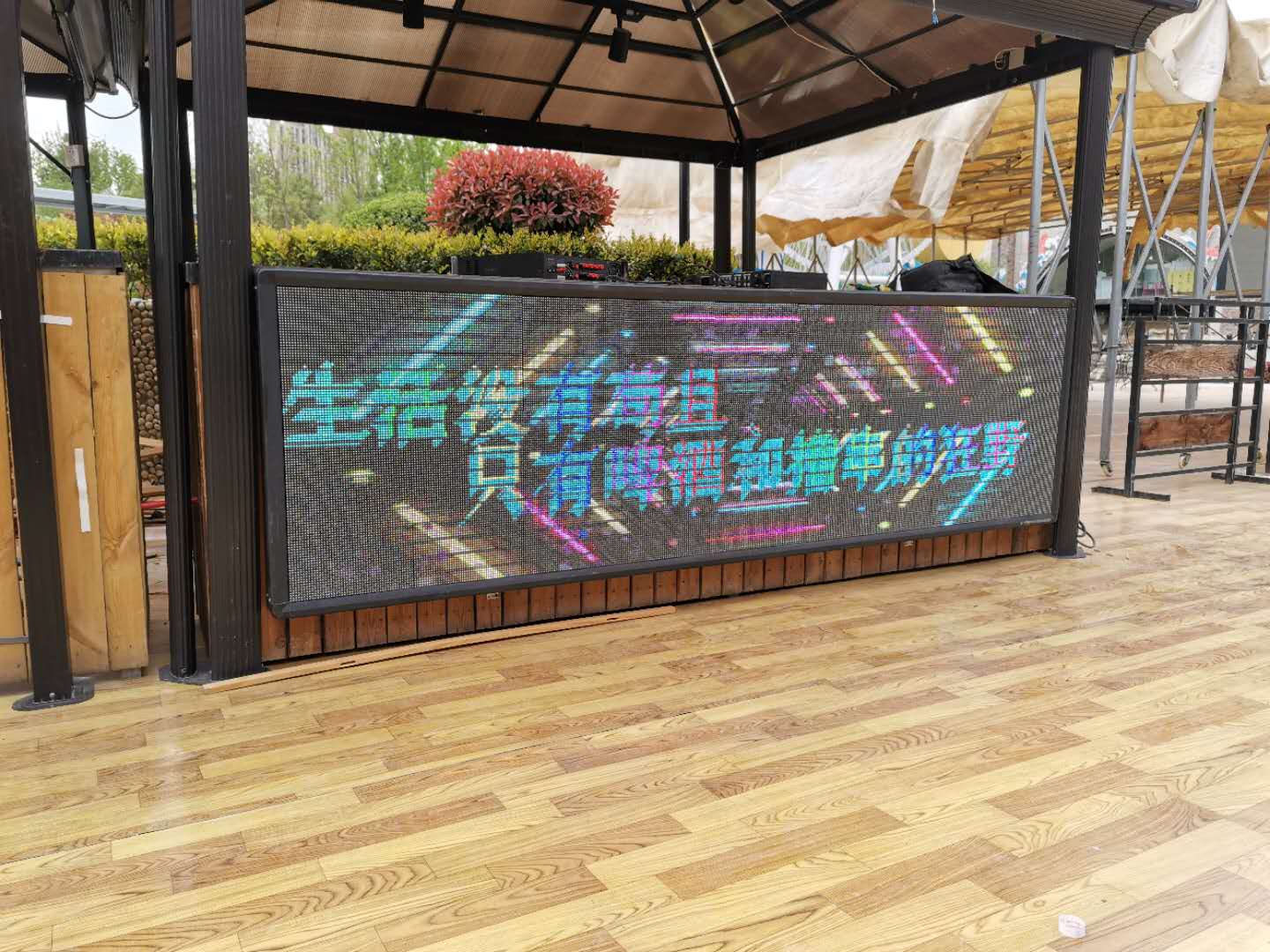 近日,鄭州大城小愛啤酒花園連鎖店,訂購(gòu)我公司P6門頭全彩屏一批,安裝正在進(jìn)行。LED門頭屏是指安裝在店鋪外面門頭上的顯示屏,它主要是針對(duì)在路邊店鋪的門頭,大多被用在商店、商鋪以及步行街等地方。門頭屏主要以P10單紅色為主,通常高度為32點(diǎn),即32cm高,外形為長(zhǎng)條形。P10單紅色的板,32x16點(diǎn),32cmx16cm,成本低。但近些年,越來(lái)越多的商戶選擇全彩門頭屏,外形一般為長(zhǎng)方形、多采用P10全彩板,顯示效果好。不單一播放文字廣告,與全彩LED廣告屏類似可播放多種格式內(nèi)容,價(jià)格又比全彩LED廣告屏低很多。