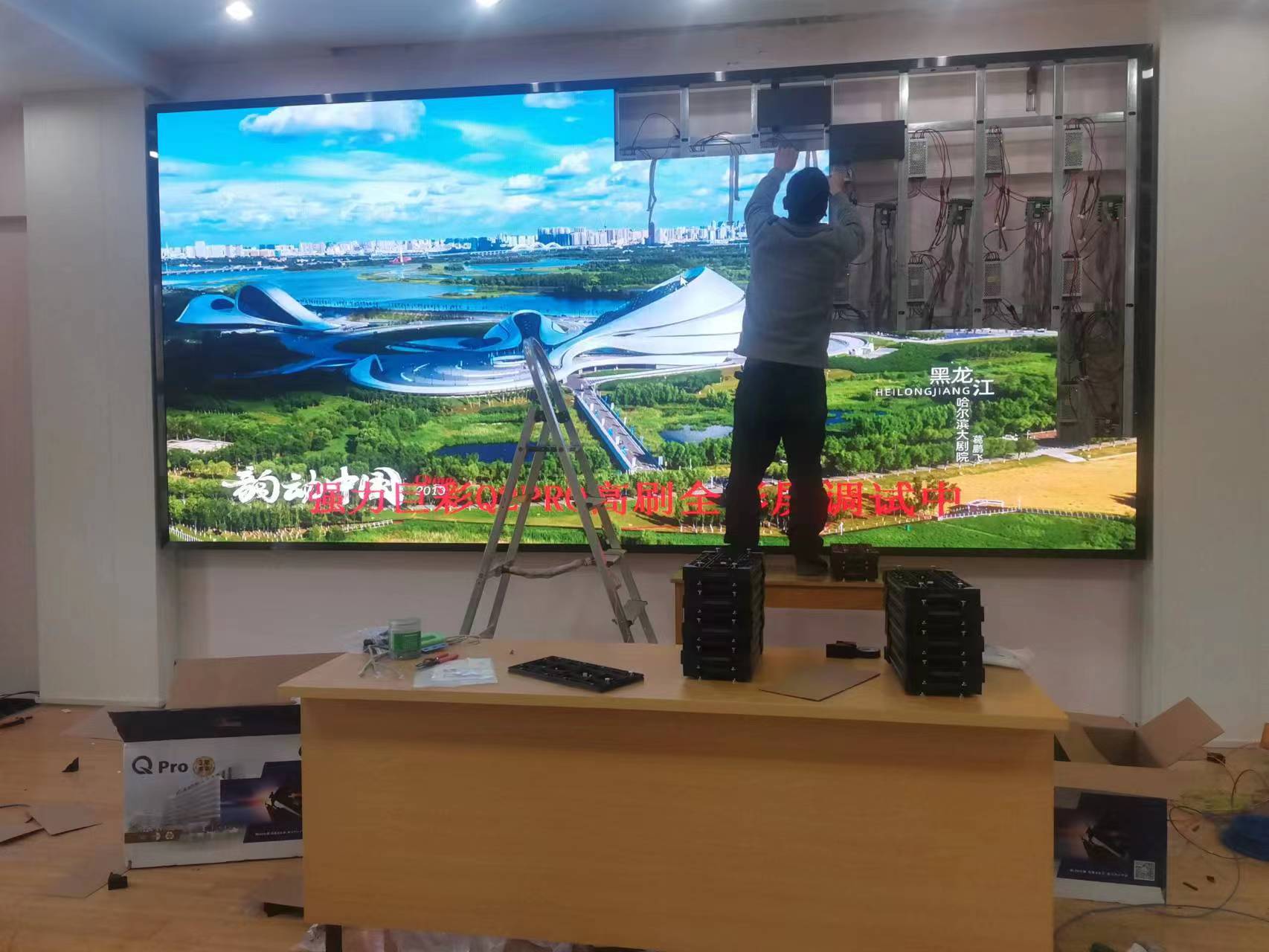 洛陽洛寧縣強(qiáng)力巨彩LED大屏幕安裝完畢